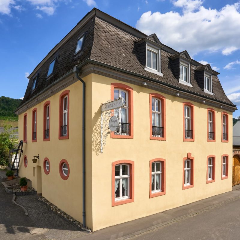 Unser Martinerhof in Wintrich an der Mosel ist seit über 700 Jahren ein weinproduzierender Betrieb. Heute bereitet der Winzer H.P. Schreiner dort seine Weine. Der Philosophie des traditionsverbundenen Hauses folgend, erzeugt er klassische fruchtbetonte Moselweine mit dem unverwechselbaren Geschmack der Schieferböden und Lagen in dieser Region. Der Martinerhof lädt Sie ein zur Erholung mit Naturerlebnis, verbunden mit Genuss von einzigartigen Moselweinen, die durch ihre Mineralität und Fruchtigkeit ihres Gleichen suchen. Wir freuen uns auf Ihren Besuch!